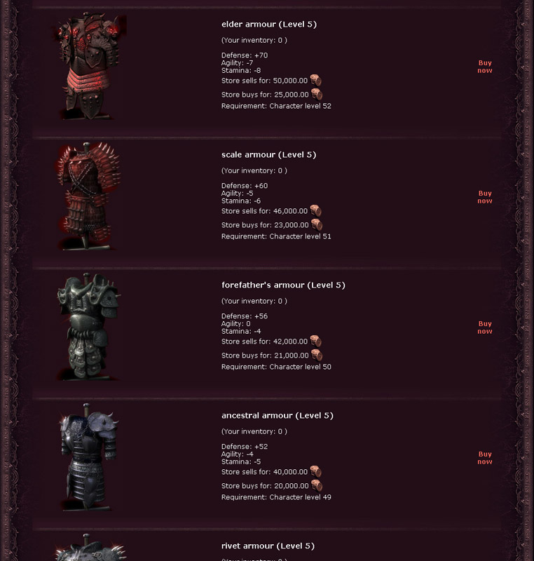 Le Gardien Dès que vous atteignez le niveau 5, vous pouvez acheter votre premier gardien, le chien de chasse. Il y a plus de 20 gardiens différents en tout, chacun d'eux peut être formé pour améliorer ses caractéristiques d'attaque, de défense et d'endurance. Chaque gardien a une valeur de base spécifique pour ces trois attributs ; pour former un de ces attributs, vous devez payer 1 pièce d'or pour le premier point, 4 pièces pour le deuxième point etc. Plus le gardien est cher, plus la valeur de base de ses caractéristiques est haute. C'est-à-dire, si le gardien a des attributs de base du niveau trois, la formation coûte 1 or pour augmenter l'attribut à l'or 4 et 4 pour l'augmenter à 5. De même, parce que des attributs de base sont à 10, la formation à 11 coûte également 1 or et à l'or des coûts 4 du niveau 12. Vous pouvez projeter de développer votre gardien par la suite, mais c'est aussi une bonne idée d'acheter toujours le meilleur gardien, parce que vous finirez par économiser de l'or plus tard, quand chaque niveau peut facilement coûter 10000 pièces d'or ! Vous pouvez renvoyer votre gardien à tout moment pour en acheter un autre ; ainsi, vous recevez un remboursement du prix d'achat initial mais l'or dépensé en améliorations est perdu ! Les attributs de votre sentinelle sont ajoutés aux votre à chaque fois que vous combattez un ennemi, de la même façon que les armes ou l'armure ajoutent un bonus à vos caractéristiques. Cependant, le bonus de votre gardien est montré dans une section séparée du rapport de combat, tandis que les bonus d'arme ou d'armure sont ajoutées directement à vos caractéristiques.